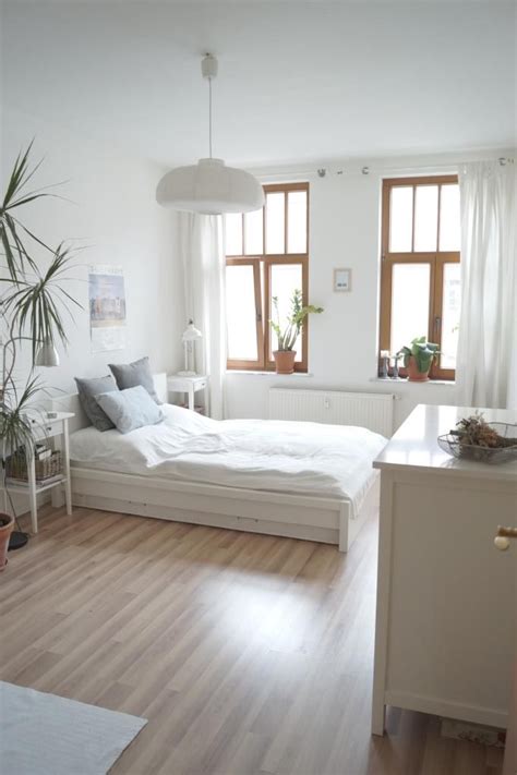 herbstliche toene im schlafzimmer mit schoenem holzfussboden